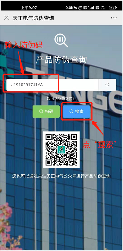 您也可以通过关注3044am永利电气公众号进行产品防伪查询